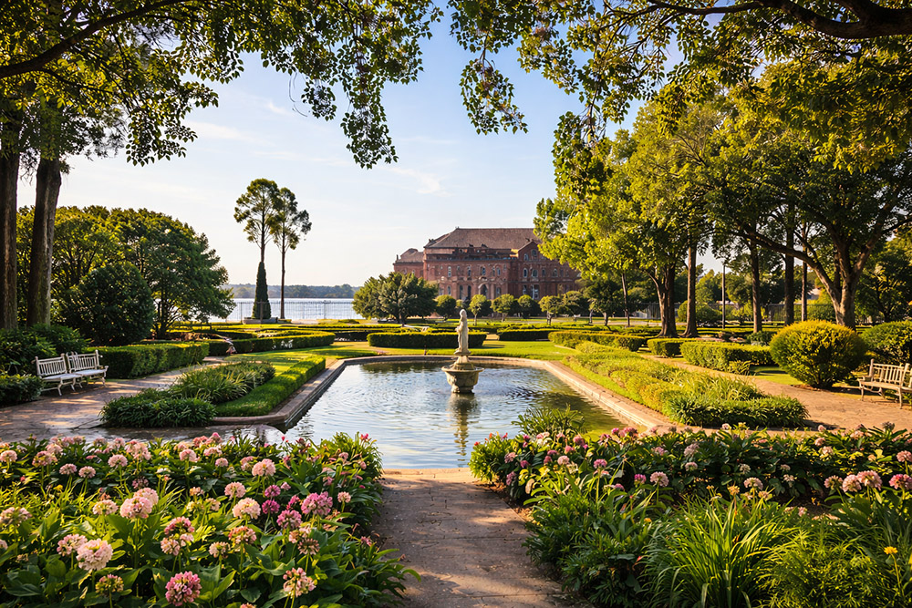 A riverside blend of art and beautifully manicured gardens just minutes from the marina.